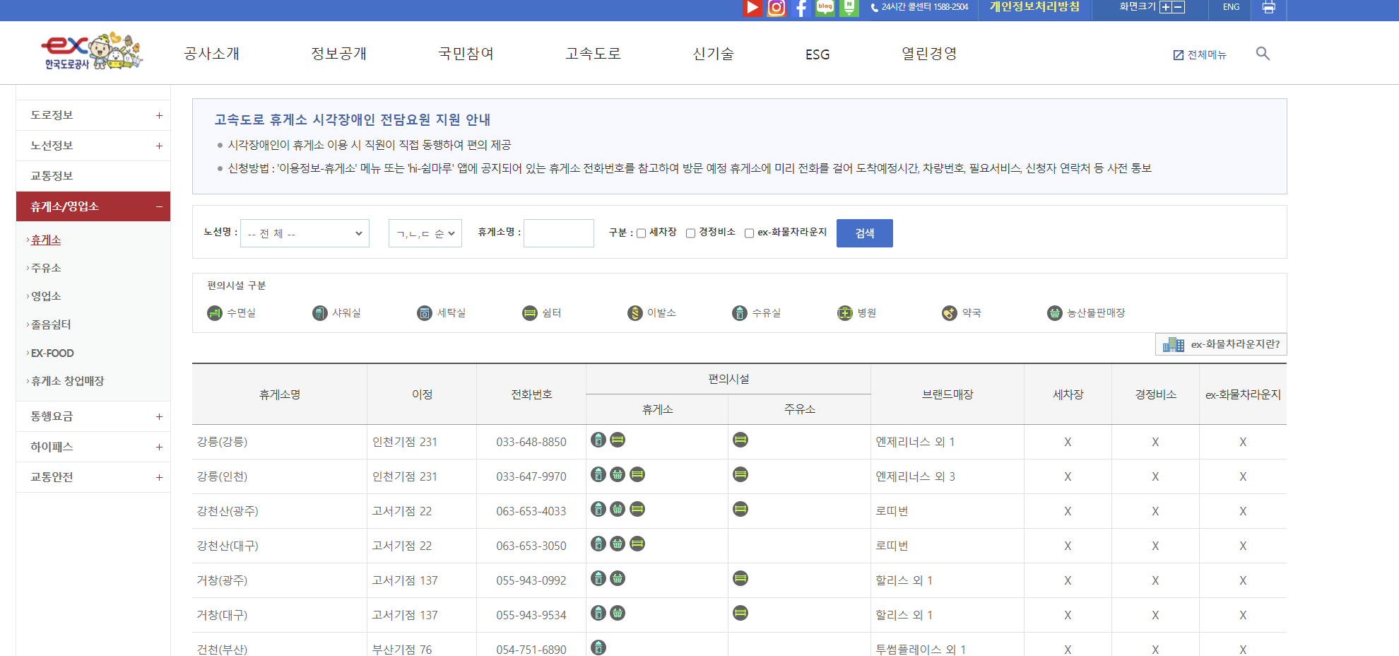 고속도로 휴게소 편의시설 확인 방법