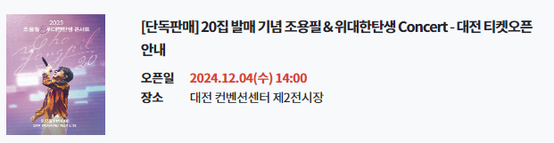 조용필 대전 콘서트 예매는 24년 12월 4일 수요일 오후 2시부터 시작됩니다.